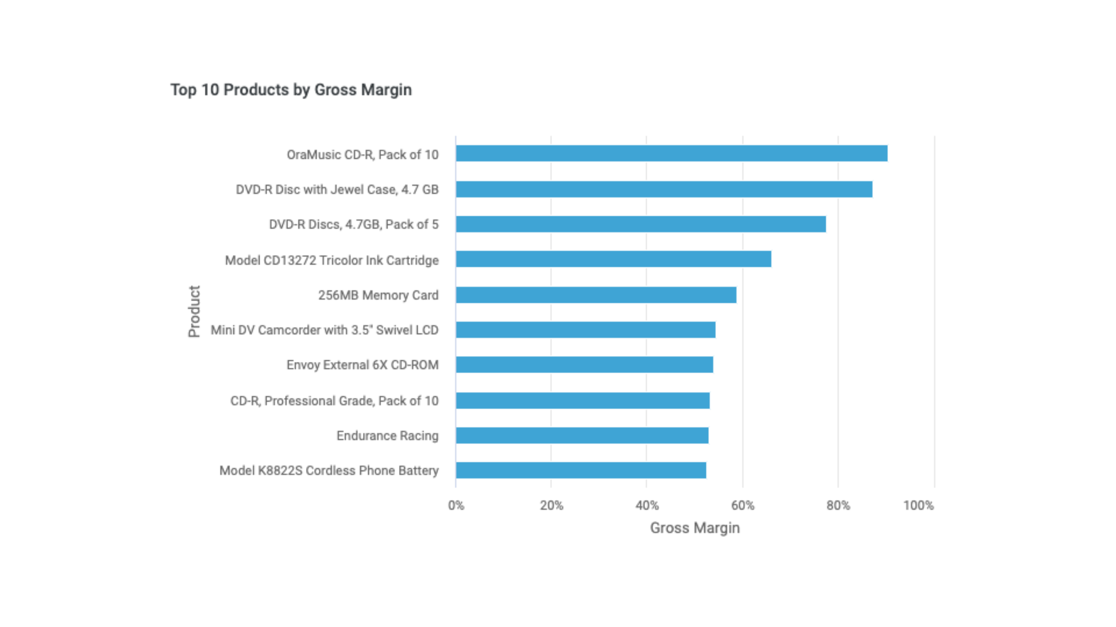 - Name the insight “Top 10 Products by Gross Margin Percent.”